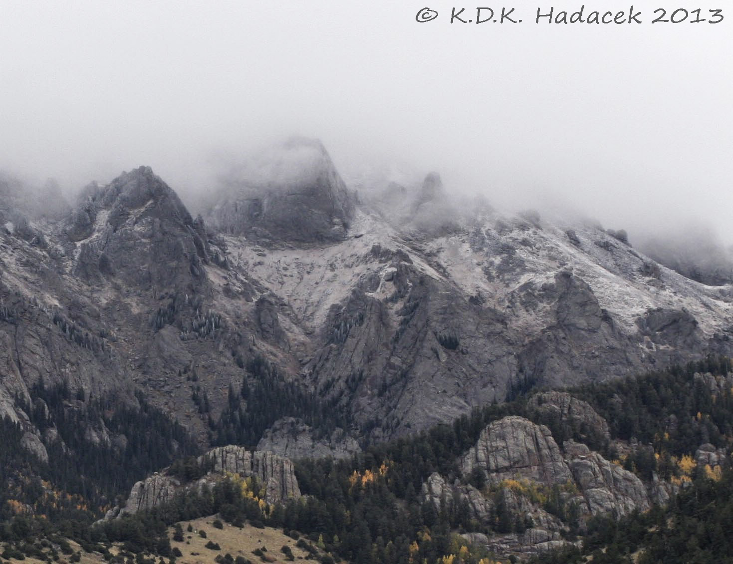 November 24, 2013 Crestone Rocks and clouds Posted by KDKH Clouds descend on mountains at Crestone, Colorado