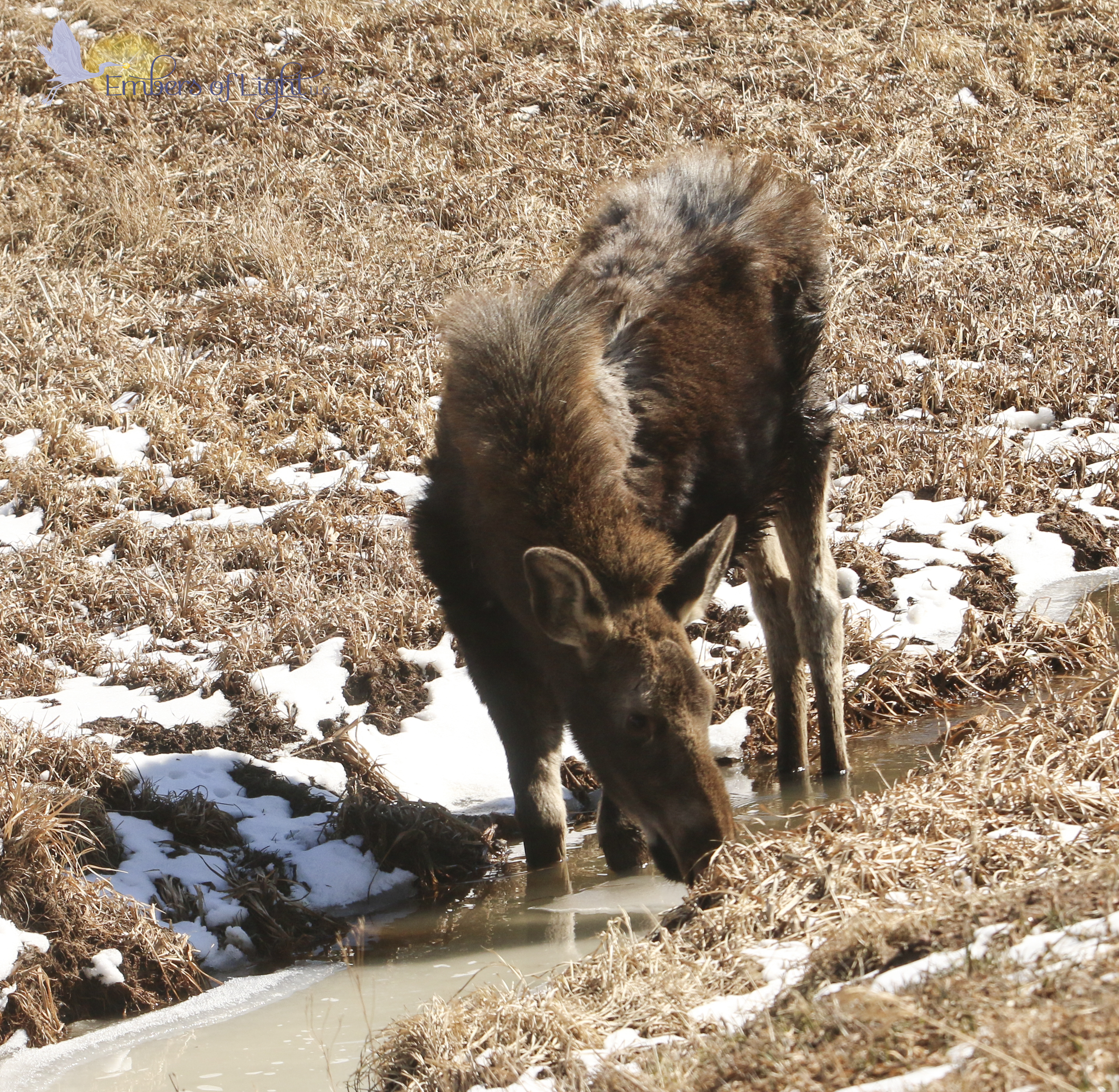 May 2, 2014 Moose Posted by KDKH A yearling moose stands in a small creek, nibbling grass in northern Colorado