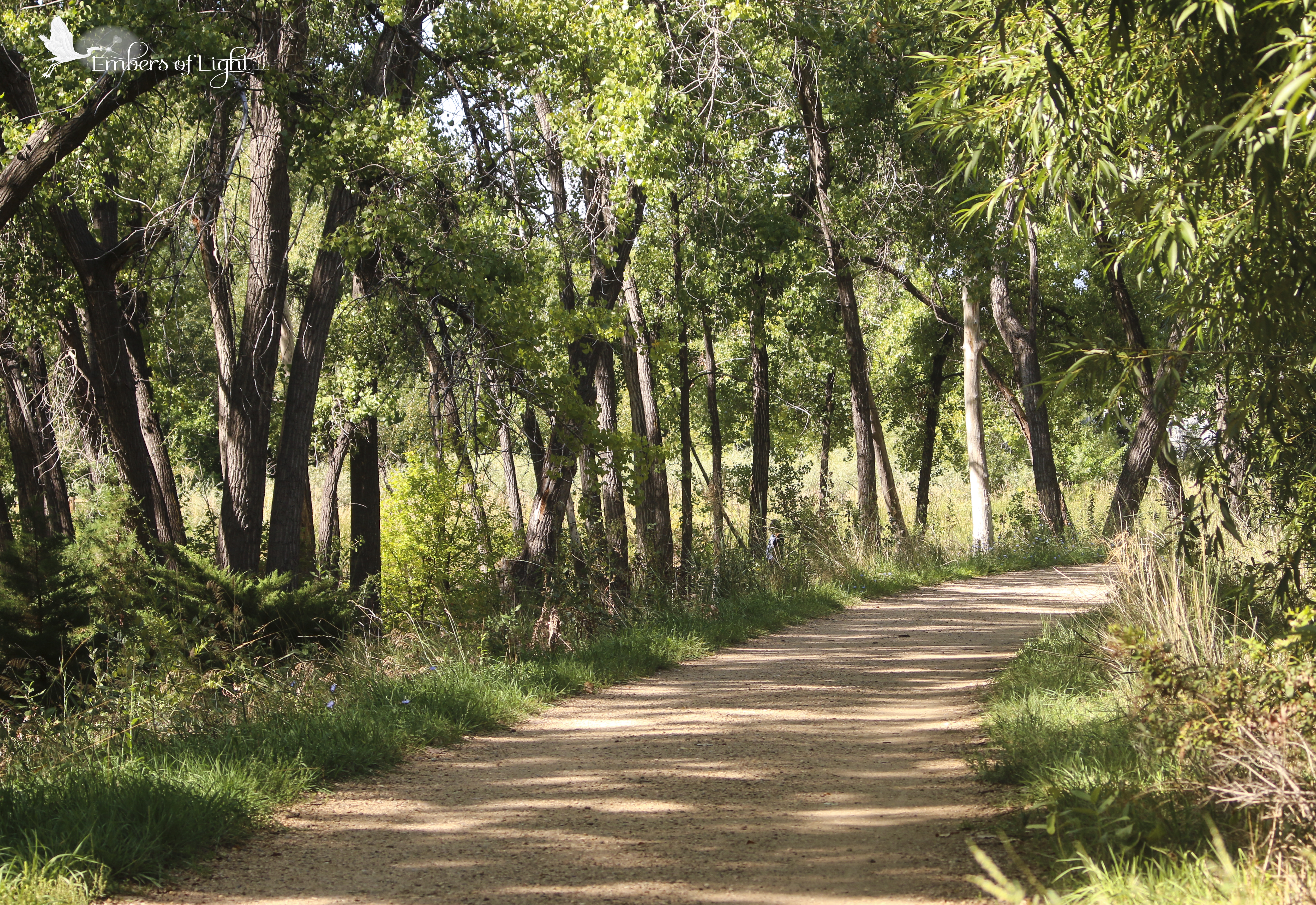 September 10, 2014 Path between twin lakes Posted by KDKH a dirt road goes through a lightly wooded area