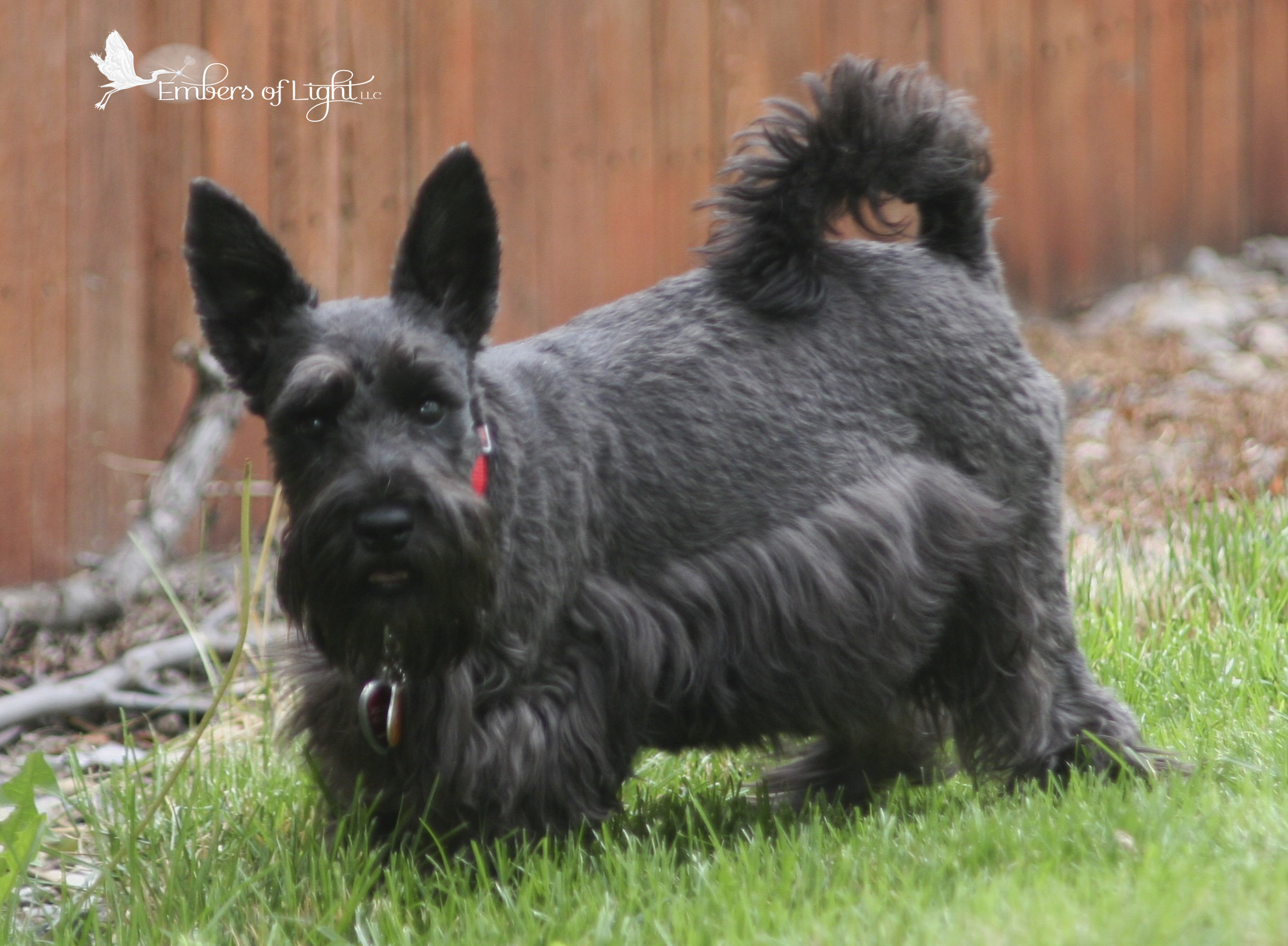 November 20, 2014 pregnant Garnet the schauffenpinscher Posted by KDKH pregnant black dog with a schnauzer haircut stands in the grass