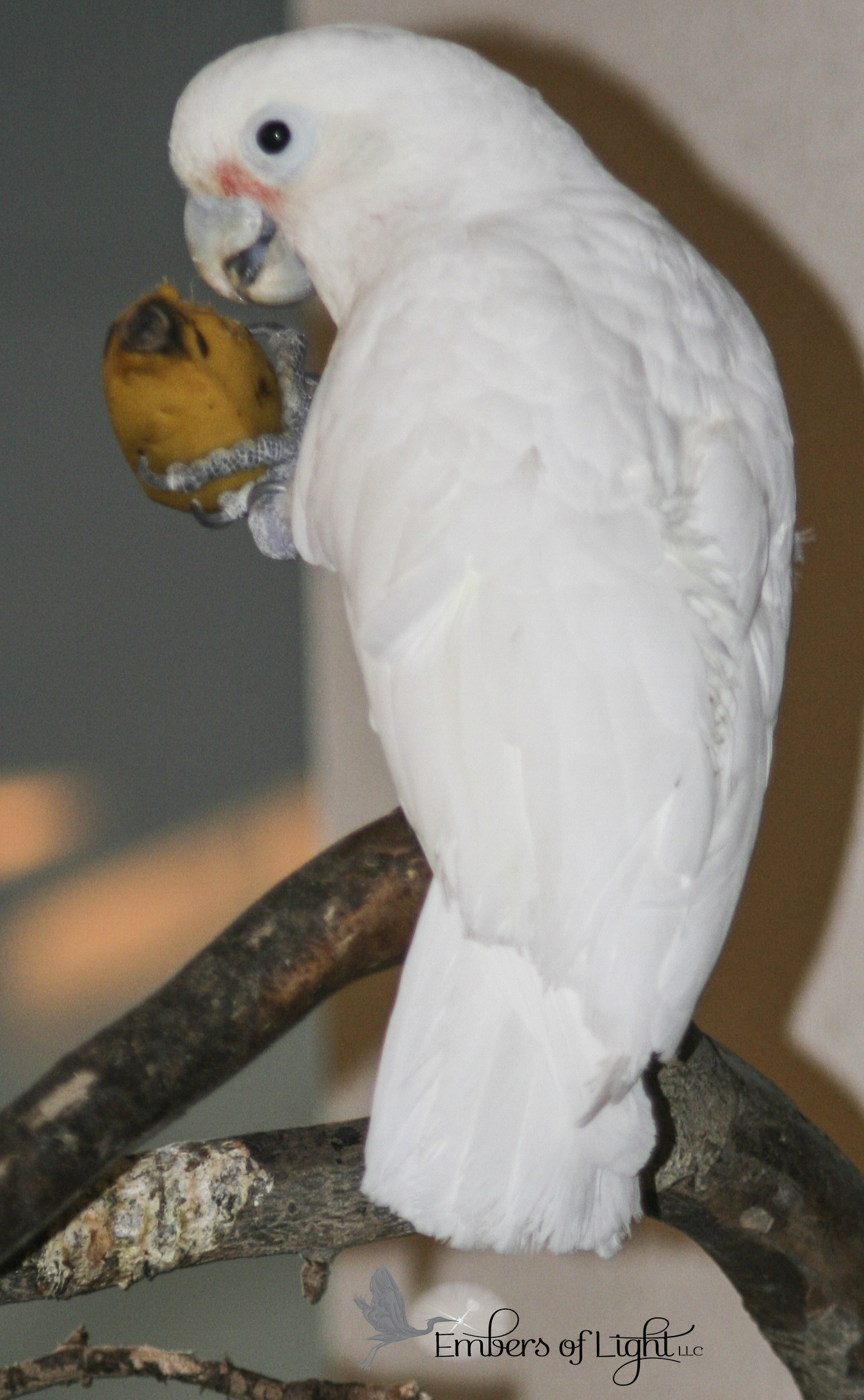 November 20, 2014 Sugar the Goffin’s cockatoo eats a banana Posted by KDKH Goffin’s Cockatoo (white parrot) eats a banana