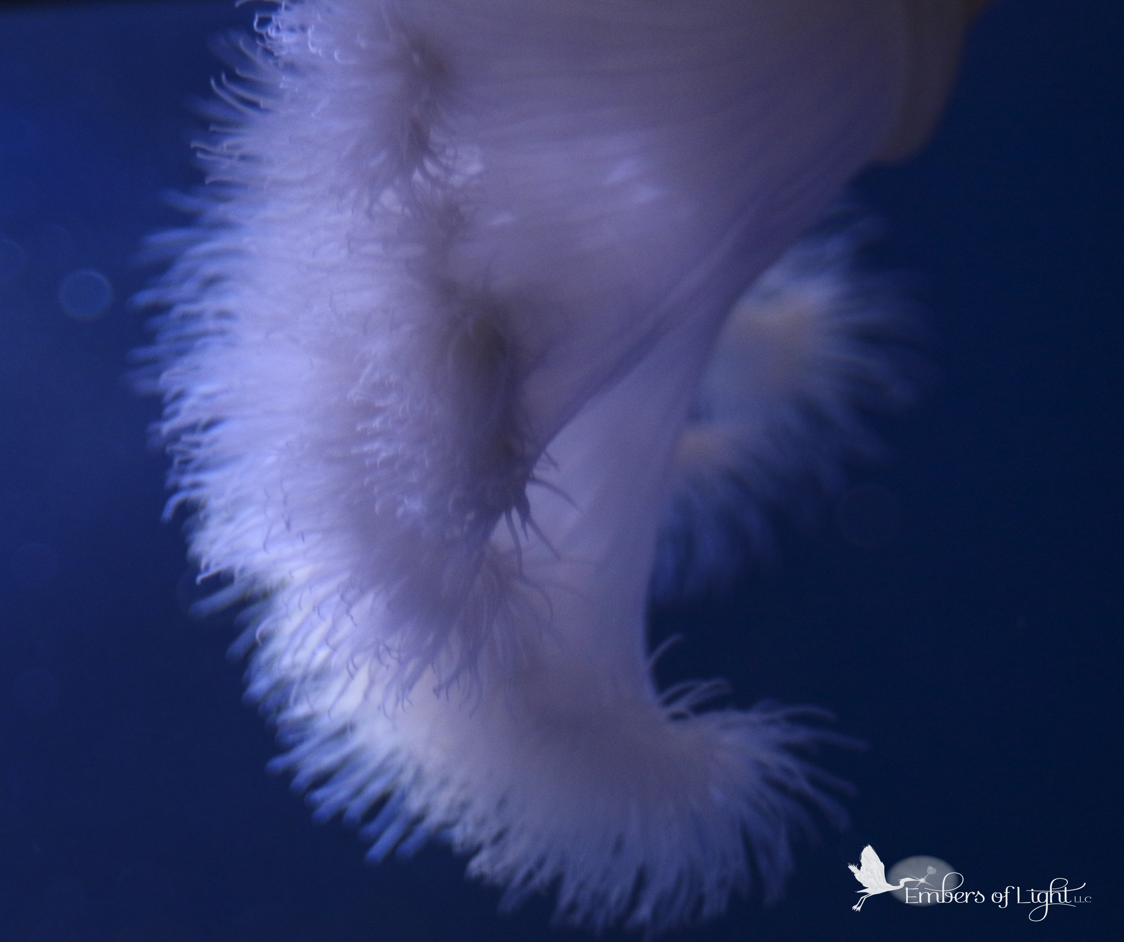 July 1, 2015 white anemone Posted by KDKH A white anemone against a dark blue background shows delicate tendrils out to catch passing food.