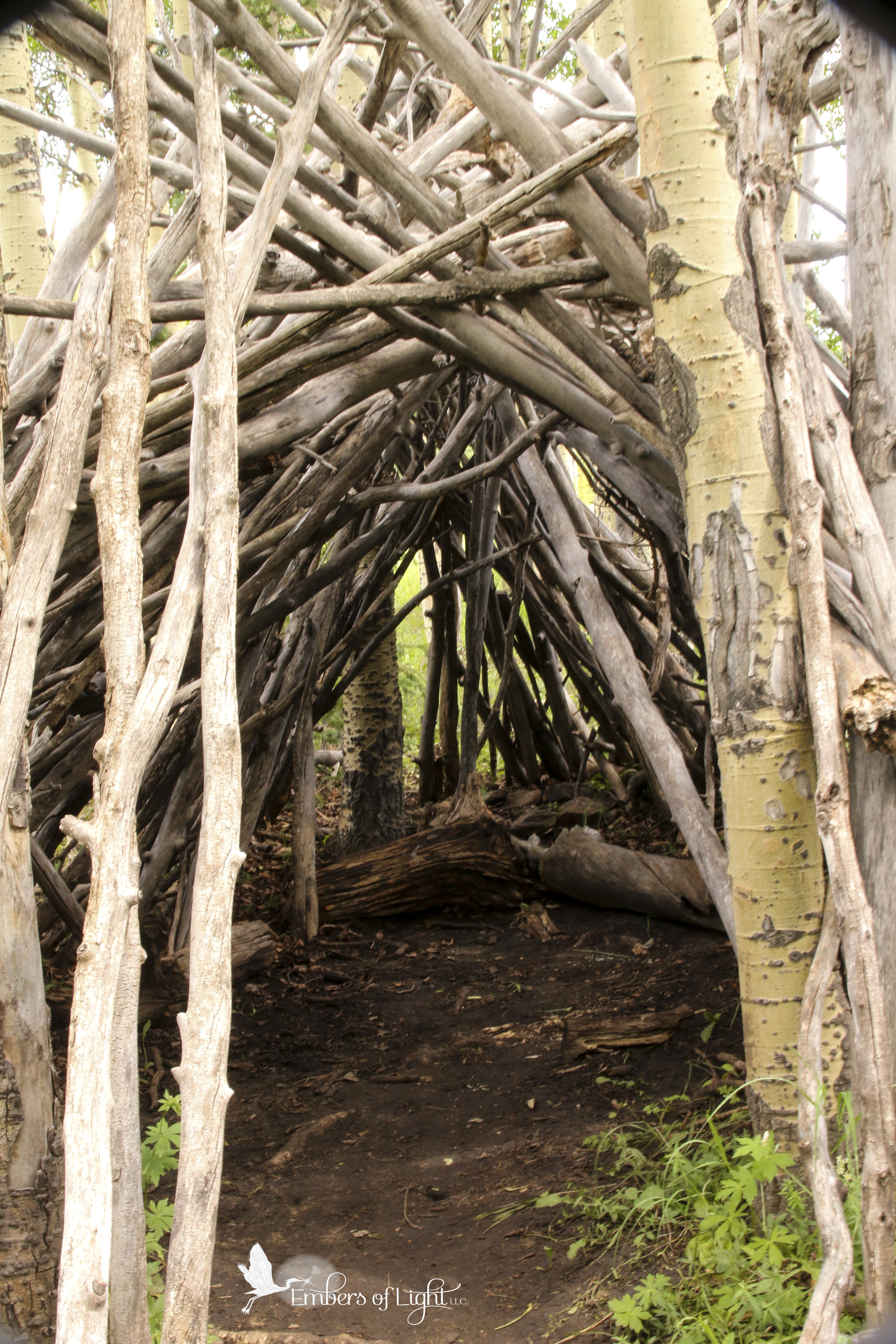 Long poles of cured trees were steepled together at the top to form a rudimentary shelter with a dirt floor